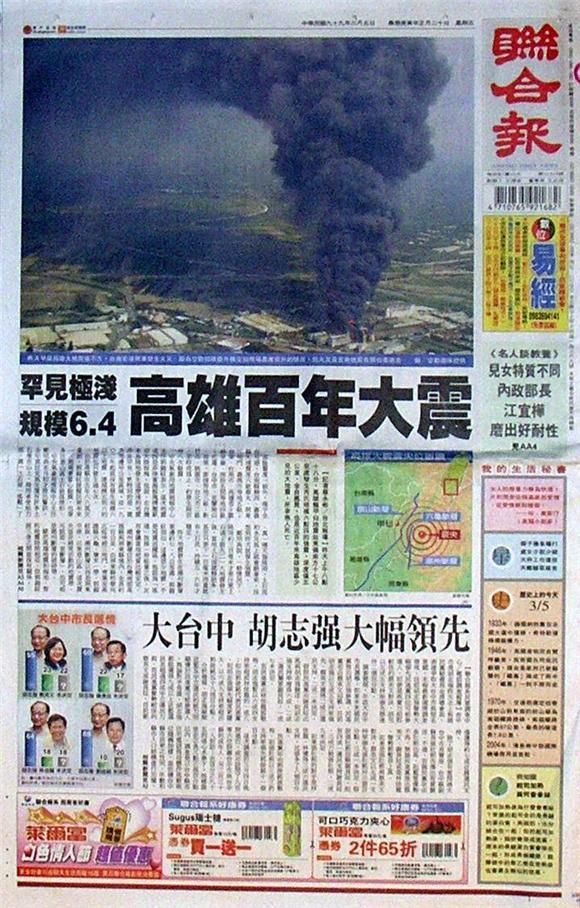 ◆聯合報:罕見極淺 規模6.4 高雄百年大震