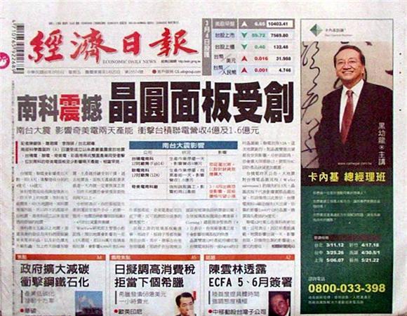 ◆經濟日報:南科「震」撼 晶圓面板受創