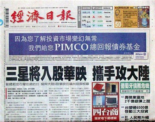 ◆經濟日報:三星將入股華映 攜手攻大陸