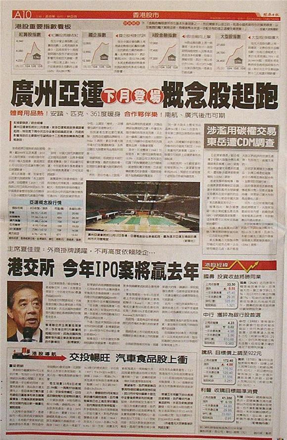 廣州亞運會即將於11月登場,眾多亞運概念股準備跟著起跑,特別是下周中共五中全會的結論底定後,月底前影響港股的主要題材可望將由十二五概念股轉換為亞運概念股。