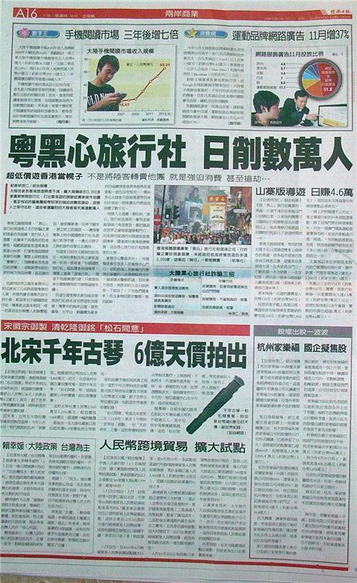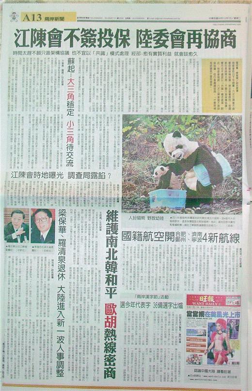 台灣主要報紙大陸版要聞標題一覽 (12月7日)