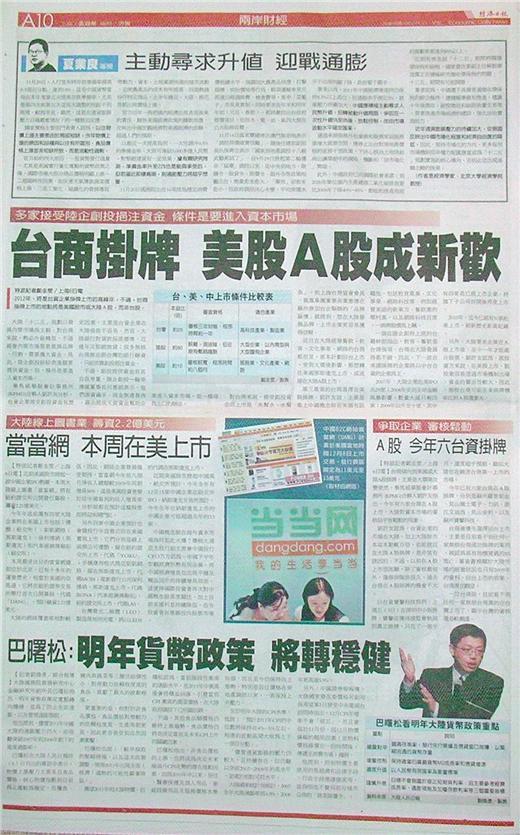 ■當當網在美風光上市 大陸的亞馬遜 年銷售額上看百億人民幣