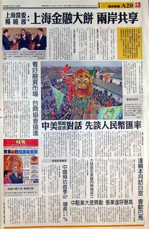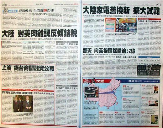台灣主要報紙大陸版要聞標題一覽(2月6日)