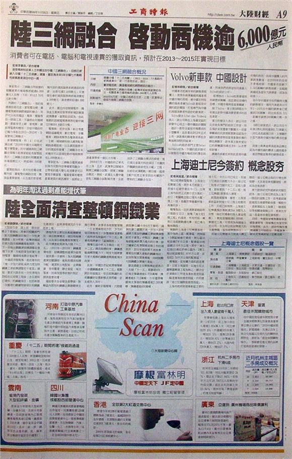 倍受兩岸科技業人士所關注的中國「三網融合」,目前已被納入中國「十二五規劃」建議,確定為未來5年中國七大戰略性新興產業項目中的一員。