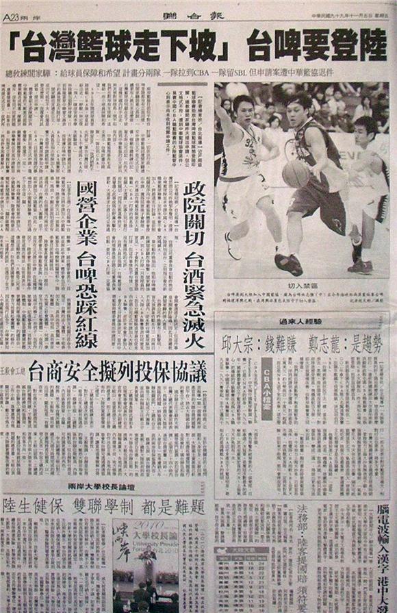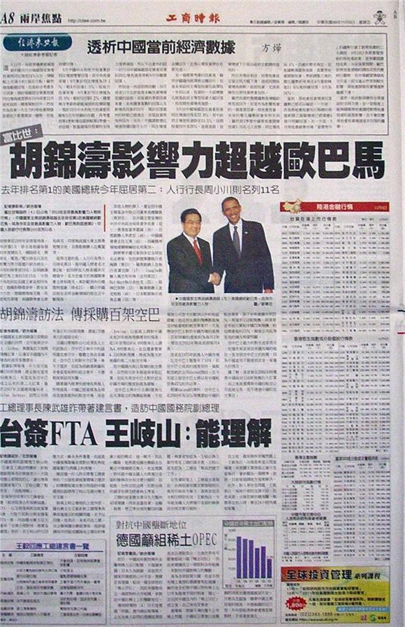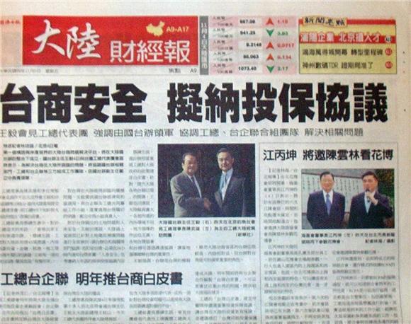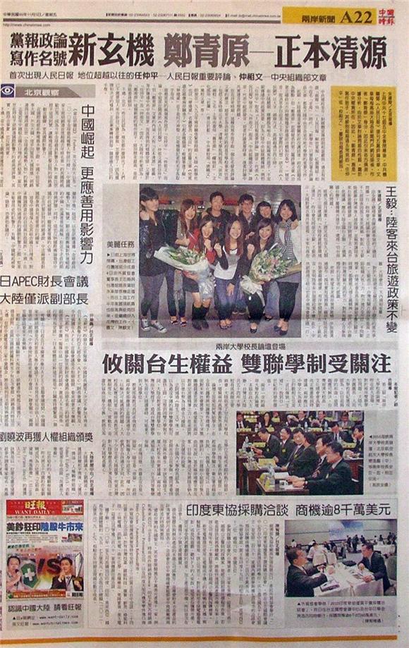 台灣主要報紙大陸版要聞標題一覽 (11月 5日)