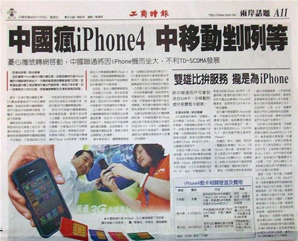由於蘋果iPhone機在中國引爆狂潮,在唯恐最快引進iPhone機的中國聯通快速坐大,中國移動透過各種管道極力反對,並希望延遲中國工信部實施可攜式門號政策;無奈力有未逮,此一政策將於11月22日起,啟動攜號轉網在天津與海南的試點。