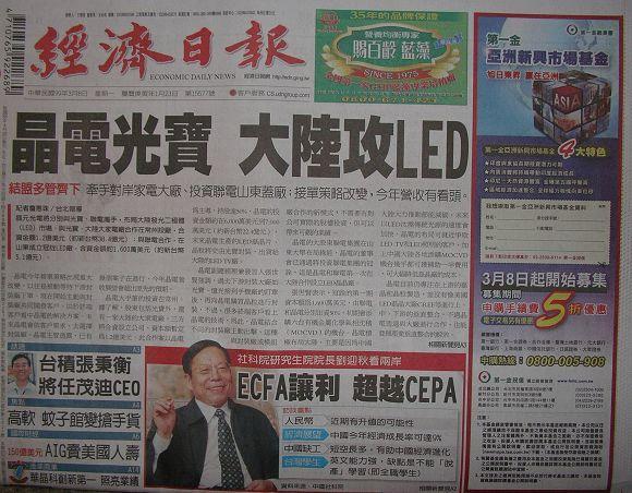 台灣主要報紙頭條要聞一覽( 3月 8日)