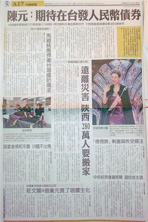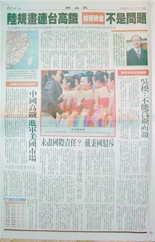 台灣主要報紙大陸版要聞標題一覽 (12月8日)