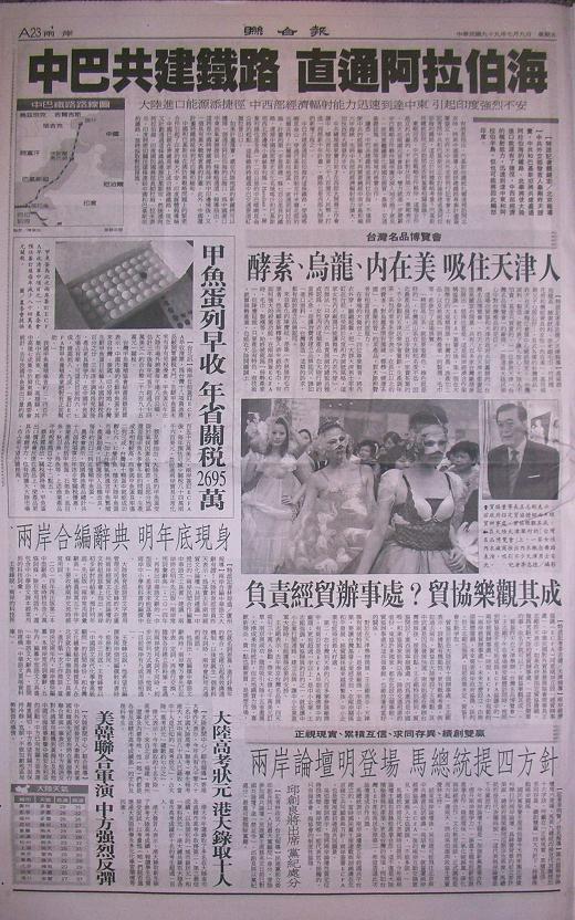 台灣主要報紙大陸版要聞標題一覽 (7月9日)