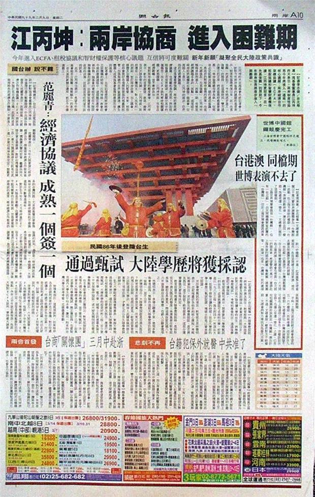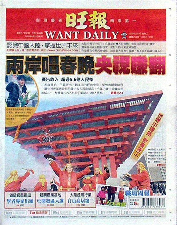 台灣主要報紙大陸版要聞標題一覽 (2月9日)