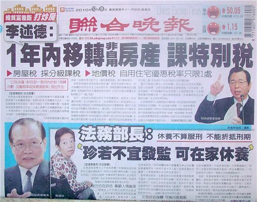 台灣主要晚報標題一覽 (12月9日)