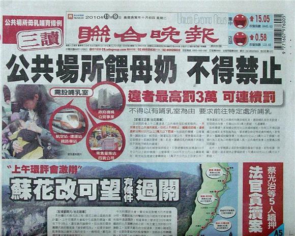 立法院院會上午三讀通過「公共場所母乳哺育條例」,未來婦女在公共場所哺乳,任何人不得禁止、驅離或妨礙,違者處新台幣6000元以上3萬元以下罰鍰。包括政府機構、公營事業、鐵路車站、航空站、捷運站及百貨公司、零售量販店達一定面積者,都應設置哺(集)乳室,讓餵母乳的媽媽不再發生找不到地方哺乳的窘境。