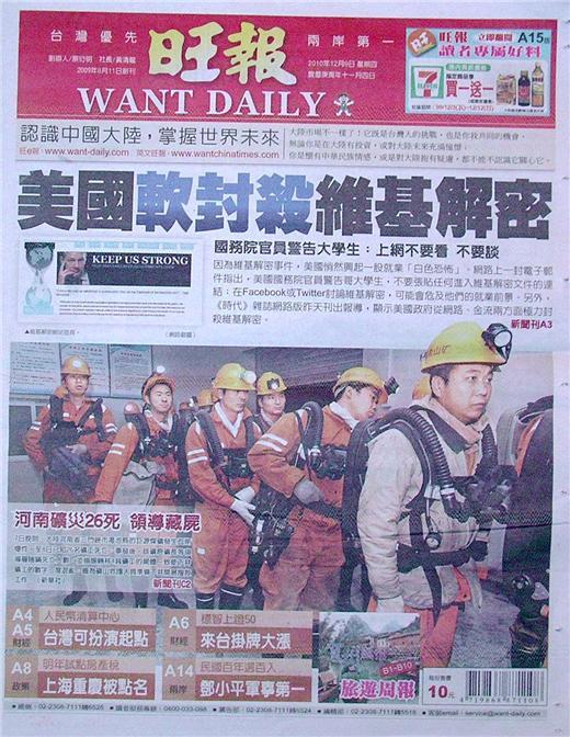 ◆旺報:美國軟封殺維基解密