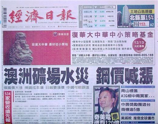 ◆經濟日報:澳洲礦場水災 鋼價喊漲