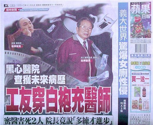 ◆蘋果日報:黑心醫院查獲未來病歷 工友穿白袍充醫師