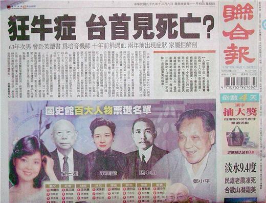 ◆聯合報:狂牛症 台首見死亡?