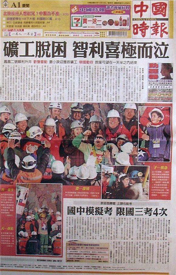 ◆中國時報:礦工脫困 智利喜極而泣