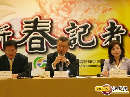 (左起)金管會副主委吳當傑、主委陳沖、副主委李紀珠10日出席金管會新春記者會。(鉅亨網記者陳慧琳攝)