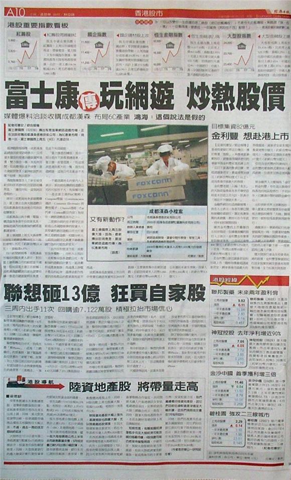 富士康國際(02038)傳出有意進軍網路遊戲市場,正在洽談收購成都漢森信息技術公司,為6C產業布局;消息一出,富士康國際上周五(9日)大漲近5%。