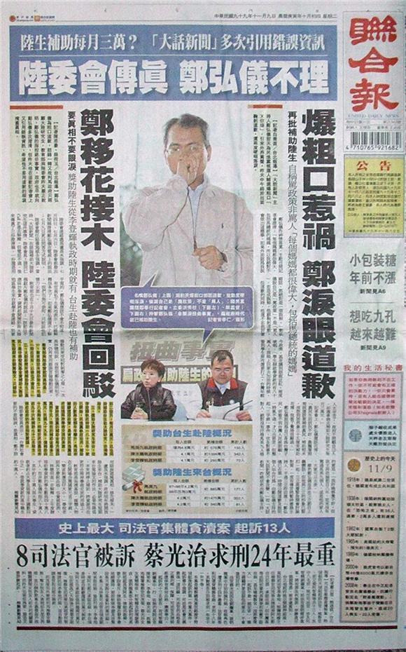 ◆聯合報:爆粗口惹禍 鄭弘儀淚眼道歉