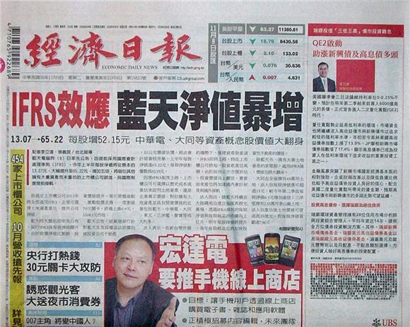 ◆經濟日報:IFRS效應 藍天淨值暴增