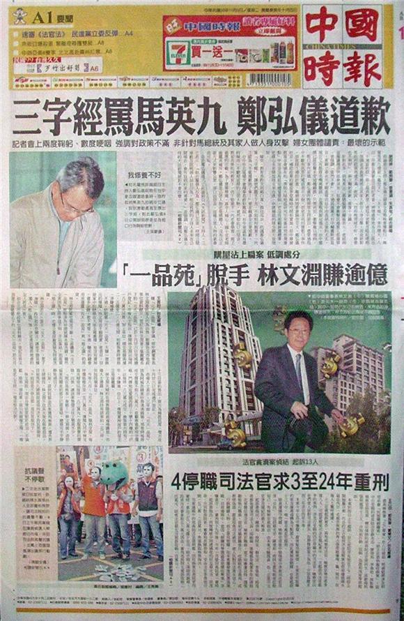 ◆中國時報:三字經罵馬英九 鄭弘儀道歉