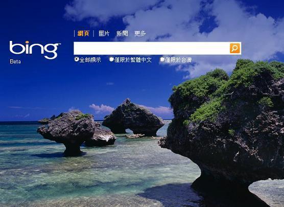 微軟搜尋引擎Bing台灣首頁。