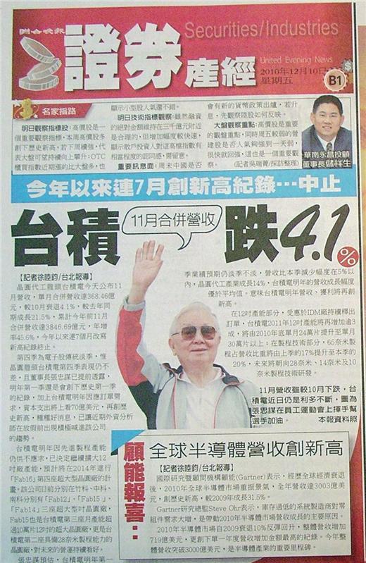 [NT:PAGE=$]■台積11月合併營收跌4.1%