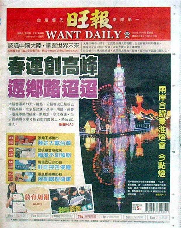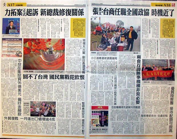 台灣主要報紙大陸版要聞標題一覽 (2月11日)