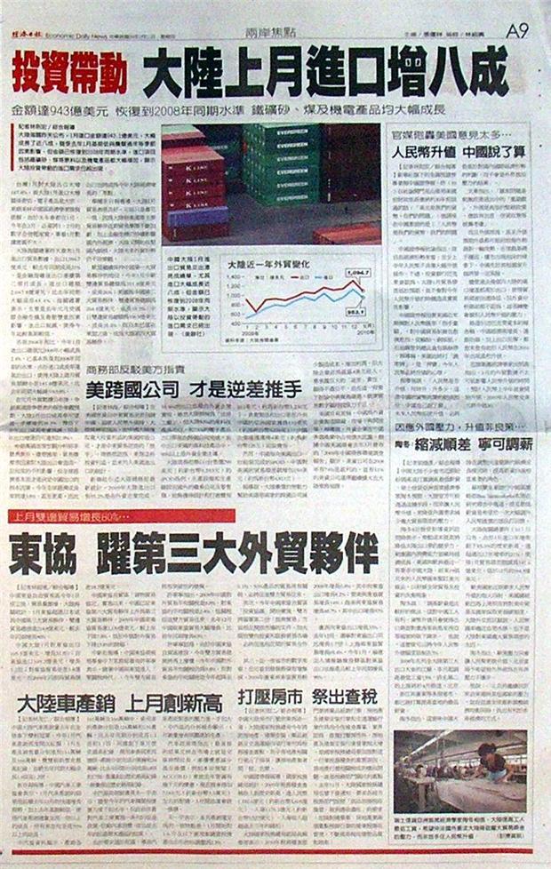 大陸海關昨天公布,1月進口金額達943.1億美元,大幅成長了近八成,雖受去年1月基期低與農曆過年等季節因素影響,但金額已恢復到2008年同期水準,進口項目包括鐵礦砂、煤等原料以及機電產品都大幅增加,顯示大陸投資帶動的進口需求已經出現。