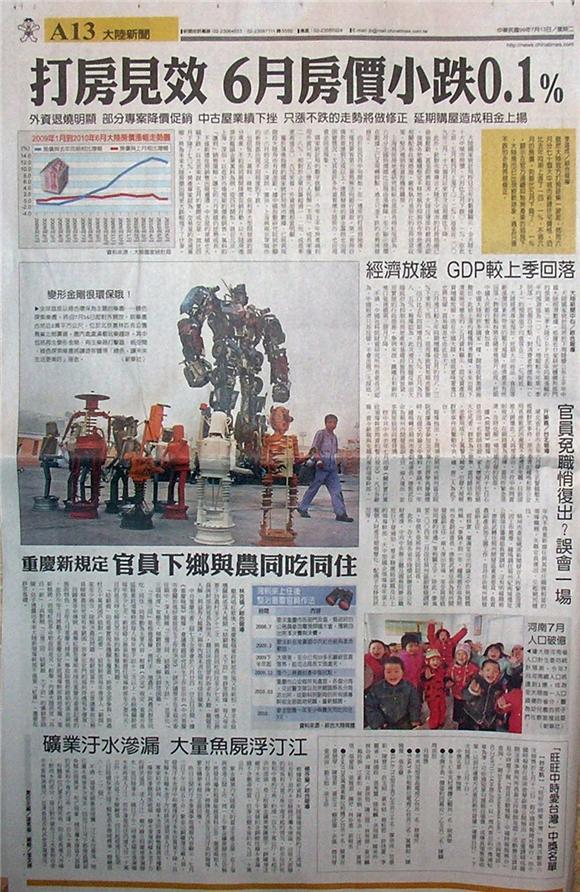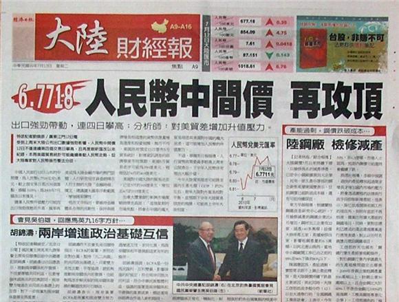 台灣主要報紙大陸版要聞標題一覽 (7月13日)