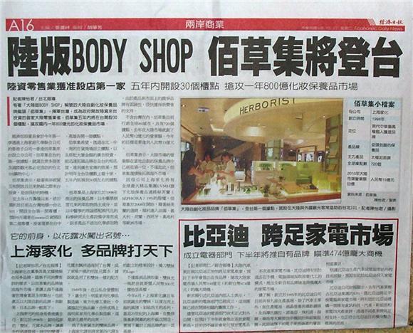 有著「大陸版BODY SHOP」稱號的大陸自創化妝保養品牌龍頭「佰草集」,揮軍台灣,成為政府開放陸資來台投資的首家大陸零售業者。佰草集五年內將在台開設30個櫃點,搶攻國內一年800億元的化妝保養品市場。