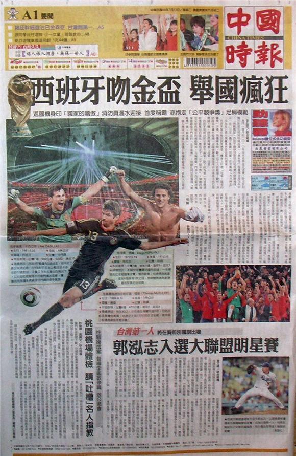 ◆中國時報:西班牙吻金盃 舉國瘋狂