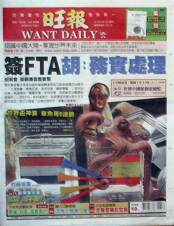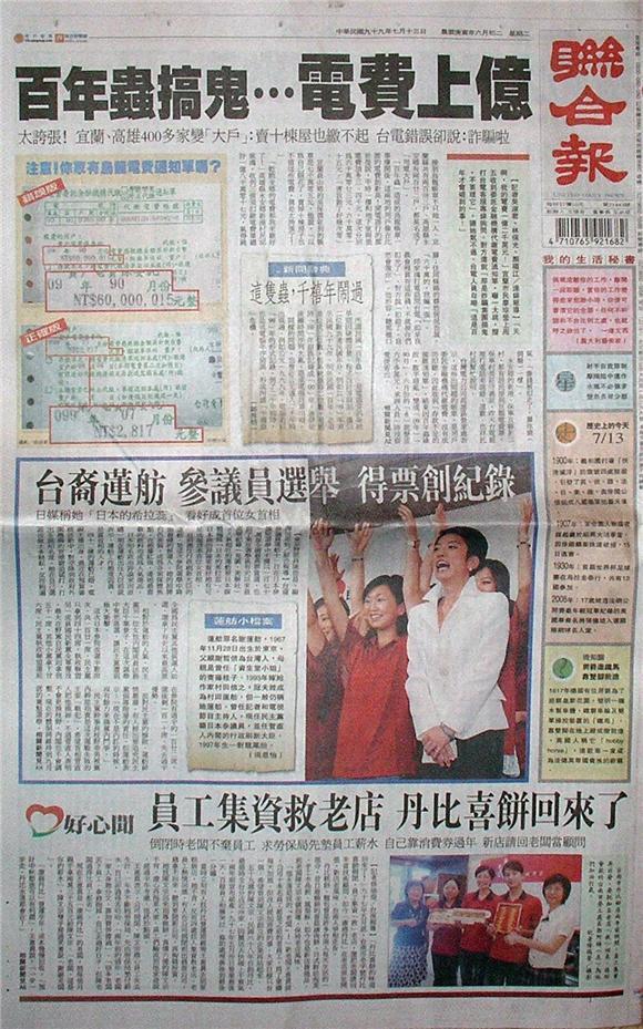 台灣主要報紙頭條要聞一覽( 7月13日)