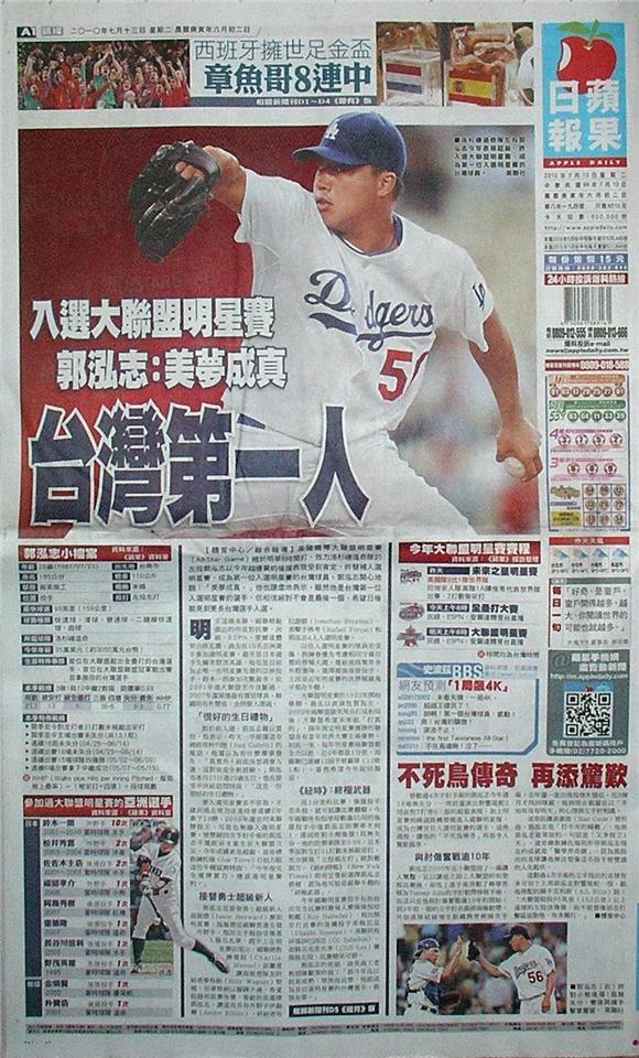 ◆蘋果日報:台灣第一人 入選大聯盟明星賽