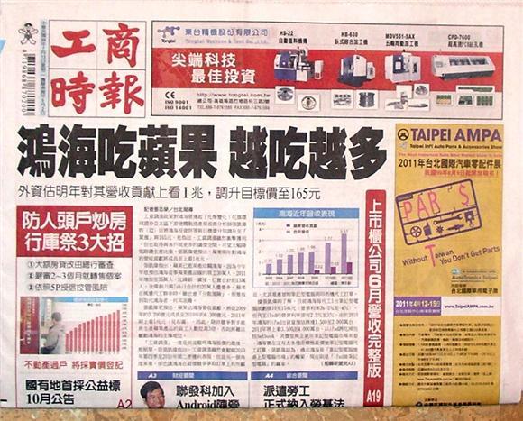 工資調漲政策對鴻海營運起了化學變化!花旗環球證券亞太區下游硬體製造產業首席分析師張凱偉昨(12)日將鴻海投資評等與目標價分別調升至「買進」與165元,他指出,工資調漲雖然衝擊獲利,但也取得與客戶間更多的議價空間,可望大幅降低賠錢生意比重。張凱偉更預估,蘋果明年對鴻海的營收貢獻將成長至上看1兆元。