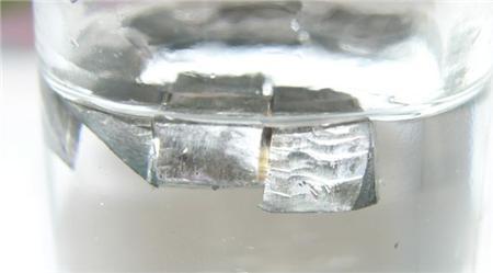 鋰金屬的密度高,呈銀白色,須保存於油中。 (圖:維基百科)