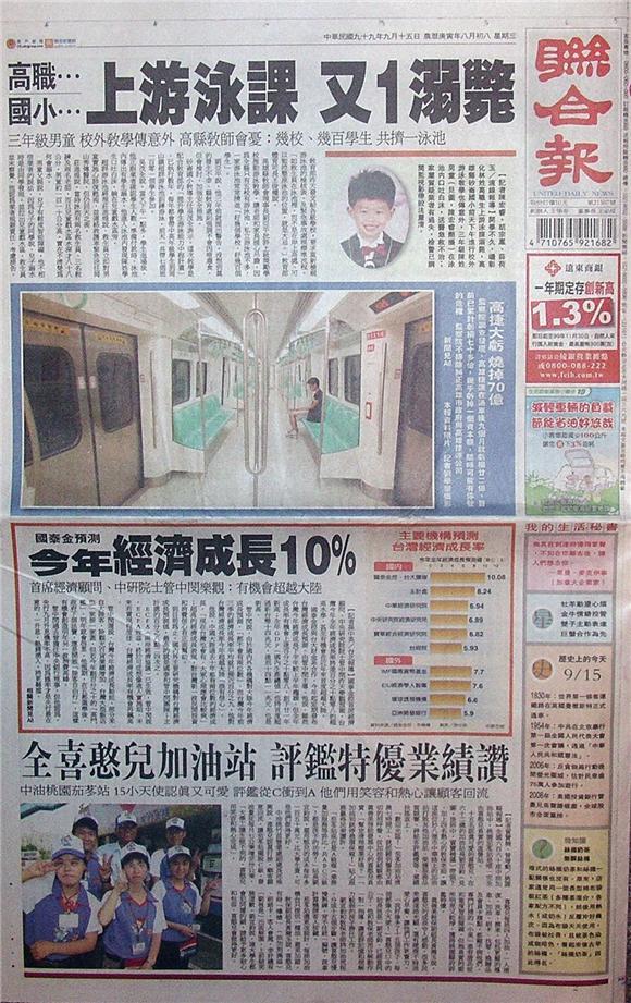◆聯合報:高職、國小…上游泳課 又1溺斃