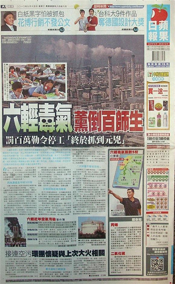 ◆蘋果日報:六輕毒氣 薰倒百師生