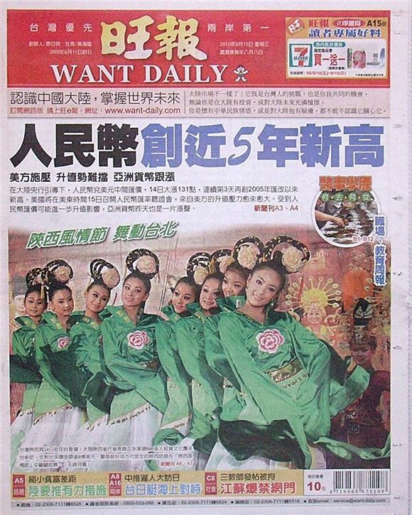 台灣主要報紙頭條要聞一覽( 9月15日)