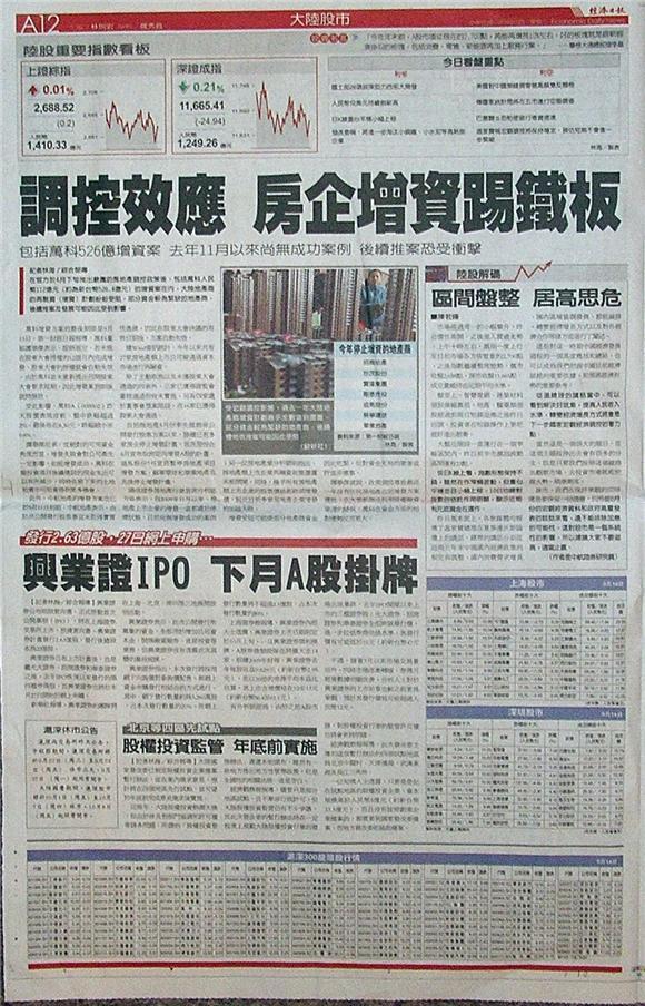 在官方於4月下旬推出嚴厲的房地產調控政策後,包括萬科人民幣112億元(約為新台幣526.4億元)的增資案在內,大陸地產商的再融資(增資)計劃紛紛受阻。部分資金較為緊缺的地產商,後續推案及發展可能因此受到影響。