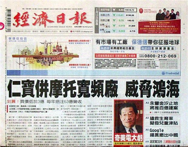 ◆經濟日報:仁寶併摩托寬頻廠 威脅鴻海