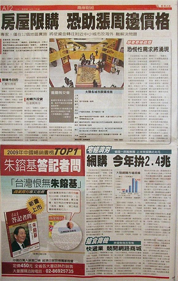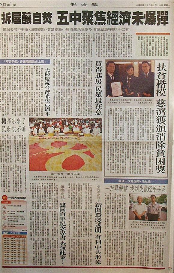 台灣主要報紙大陸版要聞標題一覽 (10月18日)