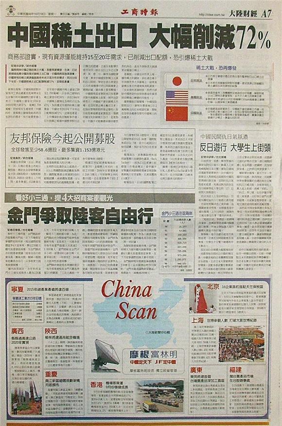 國際間與中國之間的稀土大戰,恐要再度爆發。在美、日近期頻頻指責中國刻意封鎖稀土出口後,中國商務部首度證實,中國現有的稀土資源僅能維持未來15至20年的需求,而2010年下半年,中國要對稀土出口配額削減72%,並降低產量。