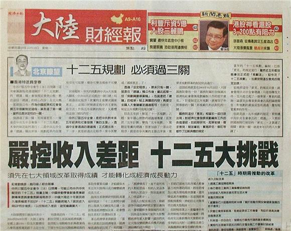 ■嚴控收入差距 十二五大挑戰
