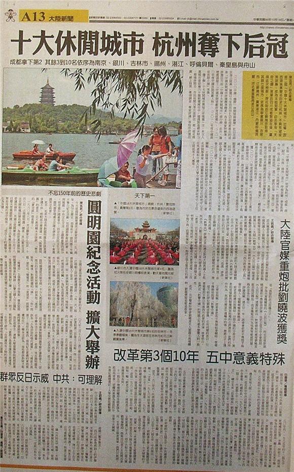 ■十大休閒城市 杭州奪下后冠