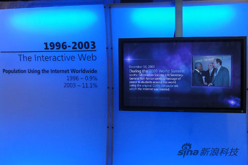 新浪科技訊 北京時間9月16日凌晨消息,微軟于周三在美國舊金山正式發布主要面向開發者和軟件應用愛好者的IE9瀏覽器Beta英文版,而北京時間17日將在中國發布中文版。預計正式版的發布將要等到2012年的3月份。以上圖為微軟IE9 Beta發布會網頁發展歷程介紹1996-2003。(楊亮)