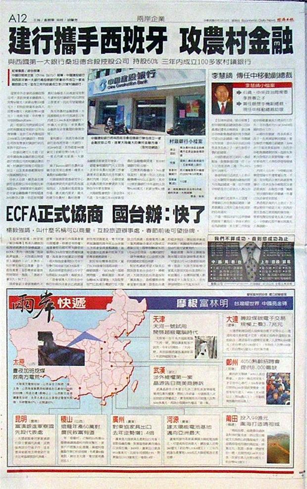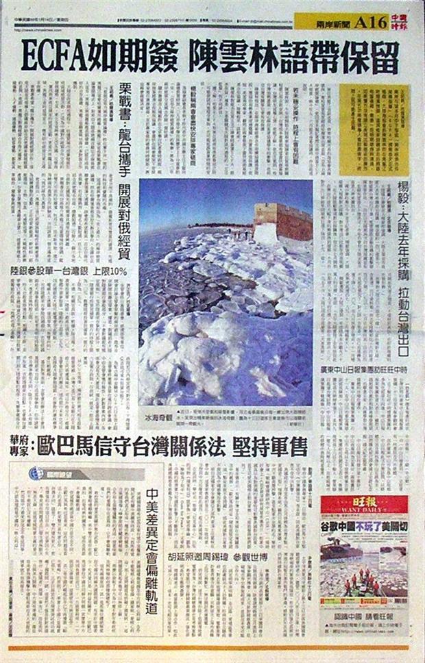 台灣主要報紙大陸版要聞標題一覽 (1月14日)