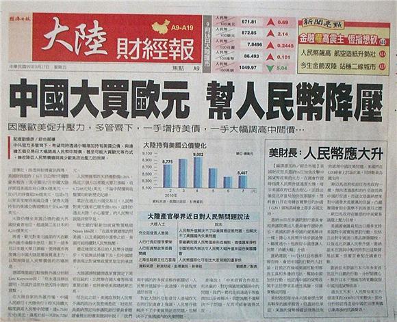 中共官方多管齊下,希望同時透過小幅增加持有美國公債,與連續五個交易日大幅調高人民幣中間價,甚至可能大買歐元等方式,兼收降低人民幣價值與減少歐美政治壓力的效果。