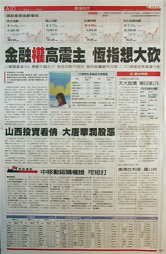 恆生指數金融成分股獨大現象將走入歷史。恆指公司研議調降金融成分股的權重,牽動港股恐掀至少新台幣2,000億的資金重分配浪潮,農行晉升有關成分股,亦恐遭波及。